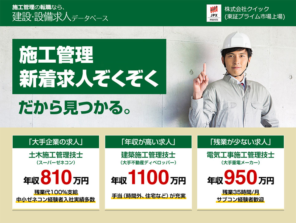 「建設設備求人データベース」は東証プライム市場上場の株式会社クイックが運営。